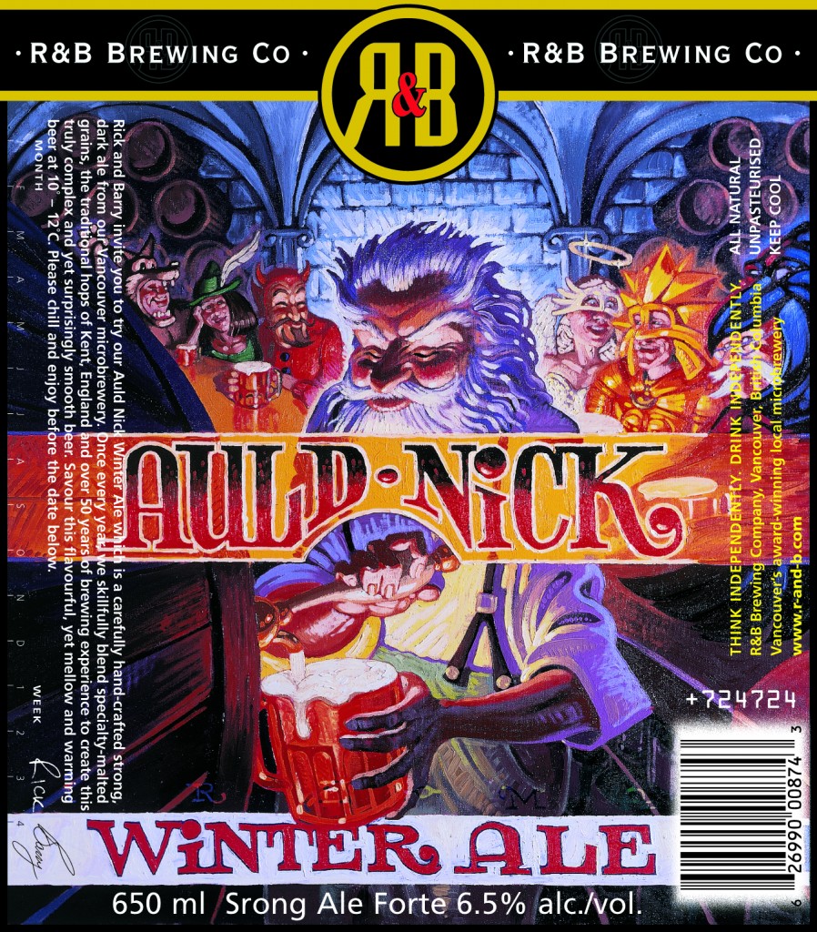 This beer packs one hell of a punch and the brewer’s at R&B are proud of that, tweeting back to me on Twitter: “It’s one of our faves for just that reason.” To be honest, I like it too, although each sip brings a slap to the face that will have beer amateurs backing away from the brew. The R&B crew are also quick to note that this is not your typical winter ale, lacking the spices one would normally experience. The logo is great with Saint Nick himself pouring beer for an eclectic group of tavern visitors.