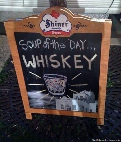 If I ever saw this sign outside a bar, I would drop everything I was doing and promptly enter said establishment! I’m not even a fan of soup and have never really understood the concept of people getting soup at restaurants when it’s pretty friggin’ easy to make a bowl of hot liquid on your own. A mystery I may never be able to solve!